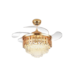 Moderne Luxe Design 42 Inch Opvouwbaar Met Verborgen Blade En Afstandsbediening Hoge Kwaliteit Kroonluchter Kristal Plafond Ventilator