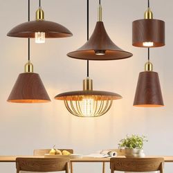 Nordic Stijl Houten Kleur Hangende Hanglamp Warm Wit Pvc Kabel Met Plafond Roos Voor Thuiskantoor Restaurant Slaapkamer